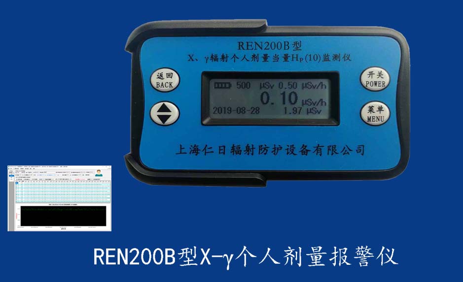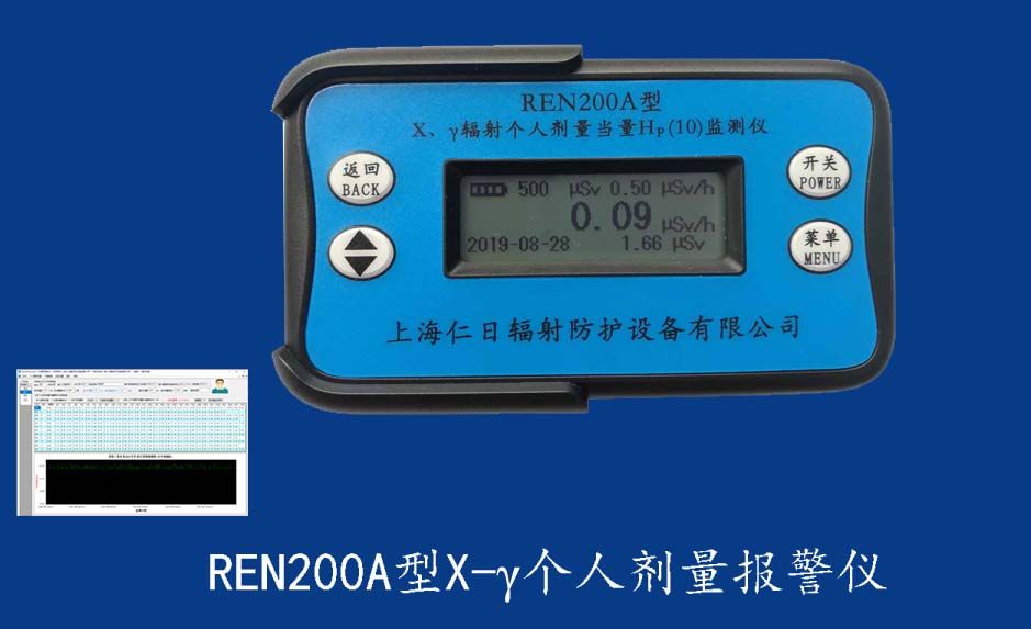 REN200型X、γ個(gè)人劑量報(bào)警儀(又叫X、γ輻射個(gè)人劑量當(dāng)量HP(10)監(jiān)測(cè)儀)內(nèi)置高靈敏度蓋格計(jì)數(shù)管為探測(cè)器,主要用來監(jiān)測(cè)各種放射性工作場(chǎng)所的X、γ以及硬β射線的輻射,具有響應(yīng)快,測(cè)量范圍寬的特點(diǎn)。能顯示工作場(chǎng)所的劑量當(dāng)量率和累積劑量,更換電池時(shí),日期及累積數(shù)據(jù)能永久保存。可選配RenRiPersonal個(gè)人劑量管理軟件,該軟件可存儲(chǔ)多個(gè)人的歷史數(shù)據(jù),能記錄日累積、月累積、年累積、輻照時(shí)長(zhǎng)、計(jì)算平均劑量率、扣除或不扣除本底輻射,且以文字和圖譜的方式展現(xiàn)數(shù)據(jù)。廣泛應(yīng)用于核電站、加速器、鋼鐵、化工、同位素應(yīng)用、醫(yī)院、工業(yè)X、γ無損探傷、放射醫(yī)療、鈷源治療、γ輻照、放射性實(shí)驗(yàn)室、核設(shè)施周圍環(huán)境監(jiān)測(cè)