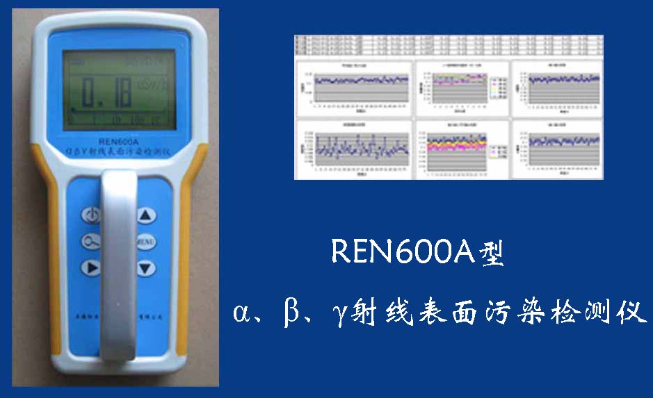 REN600A型α、β、γ射線表面污染檢測(cè)儀即可檢測(cè)α、β、γ射線,也能檢測(cè)到X射線,它采用高速嵌入式微處器作為數(shù)據(jù)處理單元,點(diǎn)陣式大屏幕LCD液晶顯示,讀數(shù)清晰、操作方便,具有400條超大容量數(shù)據(jù)存儲(chǔ)。儀器采用進(jìn)口的大面積MICA蓋革探測(cè)器,具有較高探測(cè)效率,可進(jìn)行α、β輻射表面污染檢測(cè)和X、γ輻射劑量率的監(jiān)測(cè)。此外通過配套的RenriCont表面污染管理軟件可將存儲(chǔ)的數(shù)據(jù)讀出后分析。可廣泛用在制藥廠、實(shí)驗(yàn)室、發(fā)電廠、進(jìn)出口商檢、采石場(chǎng)、環(huán)境實(shí)驗(yàn)室、環(huán)境污染調(diào)查、核安全應(yīng)急、緊急狀況營救站、金屬處理廠、地下油田、供油管道裝備、醫(yī)院核醫(yī)學(xué)科、同位素實(shí)驗(yàn)室、環(huán)境保護(hù)和警察局等部門。REN600A型α、β、γ射線表面